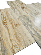 Onyx Sienna Vein-Cut Travertine offers a bold, luxurious look with the durability of natural stone. Featuring flowing layers of rich cream, golden beige, and titanium tones, this 12x24 tile delivers striking movement and warmth. The polished finish enhances its natural depth and adds elegance to both residential and commercial spaces — perfect for floors, walls, and statement areas indoors or out.