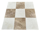 Introduce natural charm and timeless style with our Checkerboard Crema Marfil and Emperador Light Marble Tiles. This 12x12 tile design pairs the soft beige tones of Crema Marfil with the warm, mocha veining of Emperador Light marble. A balanced and inviting checkerboard layout ideal for both traditional and transitional interiors.